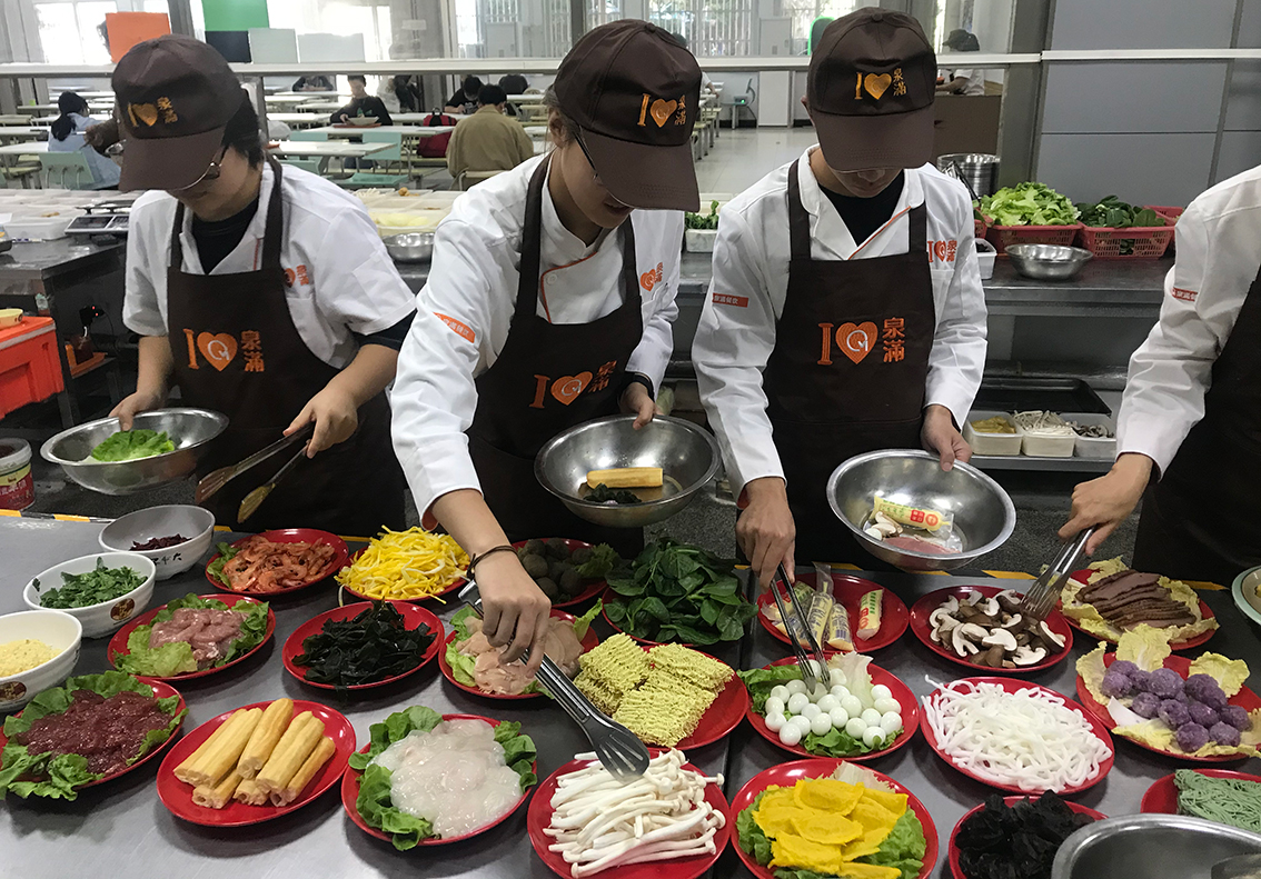 在這丹桂飄香的金秋十月?,泉滿東大香園食堂再次迎來了以“勞動育人”為主題的大學(xué)生第二課堂活動。在東大香園食堂經(jīng)理的安排下,參加活動的學(xué)生們中午如約而至。更衣室換上潔白的廚師服后,跟隨主廚的腳步,井然有序進(jìn)入后廚。?&nb...