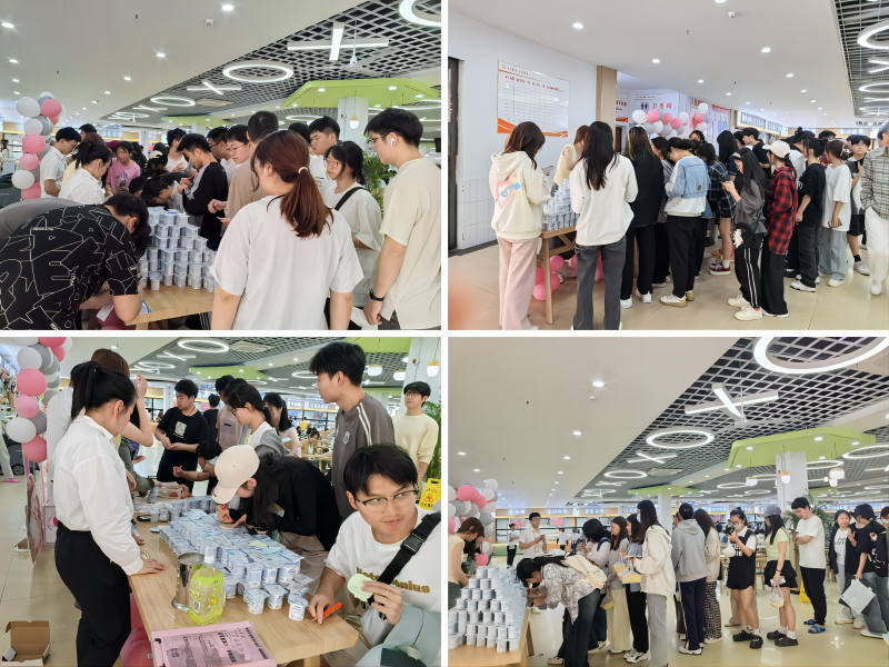 當日,三食堂精心準備了酸奶、餐券,設(shè)置了“感恩、祝?!绷粞园澹_展母親節(jié)感恩活動。同學們積極參與,用不同的方式表達對母親的愛,有的把自己對母親飽含深情的祝福用文字填滿彩色便簽貼在展板上,有的直接撥通母親電話或編輯短信發(fā)給媽媽,傳遞愛與感恩。無論同學們用什么樣的方式向母親表達愛意,都可以獲得一份代表特殊含義的“5.20”餐券和感恩酸奶?;顒蝇F(xiàn)場氣氛熱烈,吸引了1500余名同學參加。三食堂經(jīng)理張銀虎介紹“餐飲企業(yè)希望在這樣特殊的日子里,用實際行動感恩社會,回饋師生,時刻讓愛在食堂洋溢”。外國語學院日語231班的錢夏葦同學參加了活動,她說“在這親情融融的季節(jié)里,食堂開展的活動很暖心,真的被感動了,祝愿所有的媽媽母親節(jié)日快樂,永遠健康、幸福、快樂!”